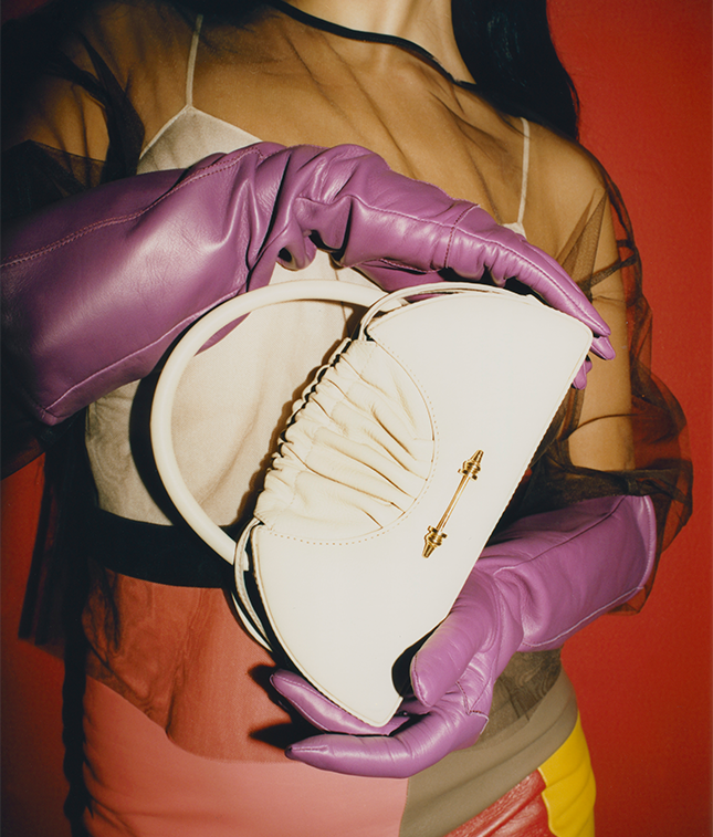Divided into two sections; this store represents Aya’s sophistication merging with Mounaz’s artistic side. The space is defined by two main directional lines that extrude into triangular volumes forming a strong dynamic form; emphasizing the two artists’ different personalities and how they eventually come together in harmony to create the synergy between the two sisters while curating for their brand.